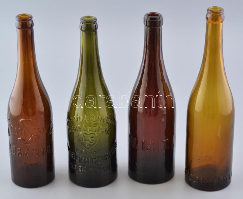 4db üveg,(W.M.T., Weisz Mór és Társa töltése Gyulán, Dréher Antal serfőzdéje védjegy kiviteli márcziusi sör Kőbánya, Polgári Serfőző Kőbánya) koruknak megfelelő állapotban, címke nélkül, m: 28-29,5 cm