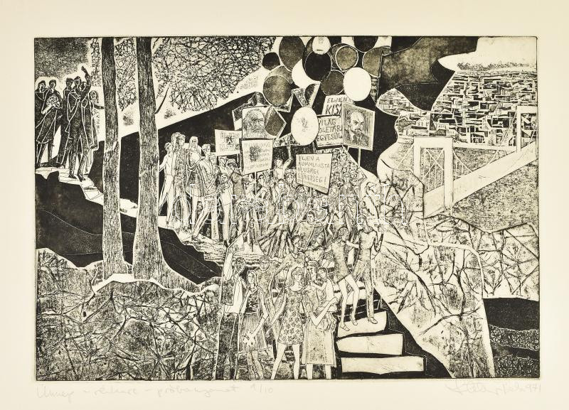 Leírás: Stettner Béla (1928-1984): Ünnep, 1971. Rézkarc, papír, jelzett. Próbanyomat. Számozott (9/10). Feltekerve. 26x38 cm.