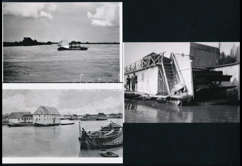 Leírás: cca 1930 előtt, különböző időpontokban és eltérő helyszíneken készült felvételek hajómalmokról, különféle hagyatékokból 3 db mai nagyítás, 10x15 cm