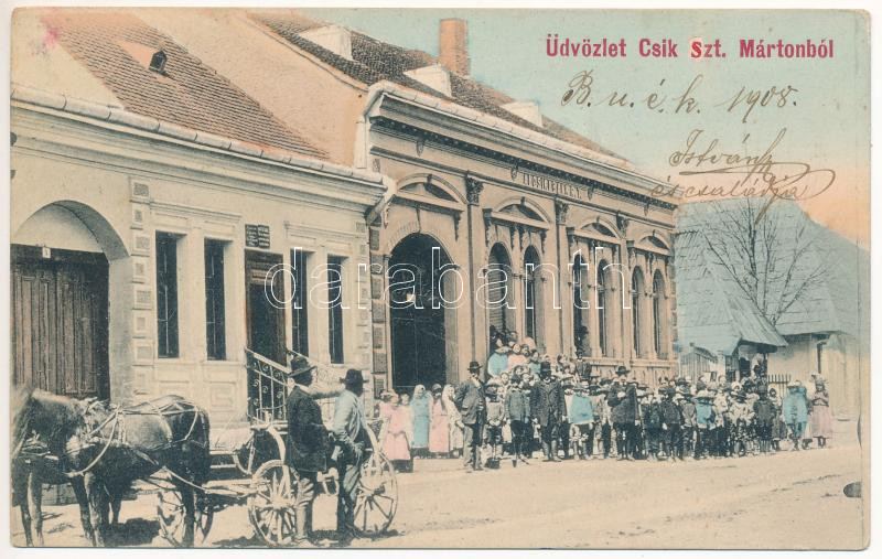 1907 Csíkszentmárton, Sanmartin; utca, Al-Csíki Bank R.-T., üzlet, lov... https://www.darabanth.com/hu/429-Gyorsarveres/429.0/Kepeslapok/Erdely~1500006/1907-Csikszentmarton-Sanmartin-utca-Al-Csiki-Bank-R-T-uzlet-lovaskocsi-Brassoi-Lapok-ki~II2755942
