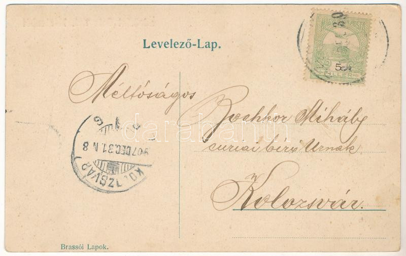 Leírás: 1907 Csíkszentmárton, Sanmartin; utca, Al-Csíki Bank R.-T., üzlet, lovaskocsi. Brassói Lapok kiadása / street view, bank, shop, horse-drawn carriage (EK)