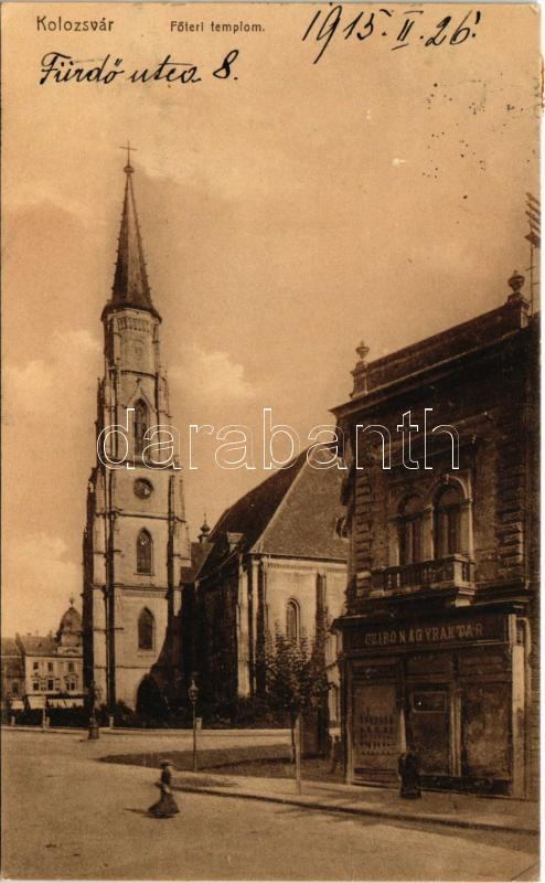 1915 Kolozsvár, Cluj; Fő téri templom, cipő nagyraktár üzlete. Gibbon ... https://www.darabanth.com/hu/429-Gyorsarveres/429.0/Kepeslapok/Erdely~1500006/1915-Kolozsvar-Cluj-Fo-teri-templom-cipo-nagyraktar-uzlete-Gibbon-Albert-uzlete-main-sq~II2752952
