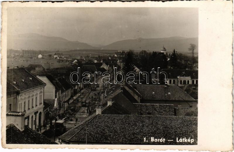 1943 Barót, Baraolt; látkép, üzletek / general view, shops https://www.darabanth.com/hu/429-Gyorsarveres/429.0/Kepeslapok/Erdely~1500006/1943-Barot-Baraolt-latkep-uzletek-general-view-shops~II2753973