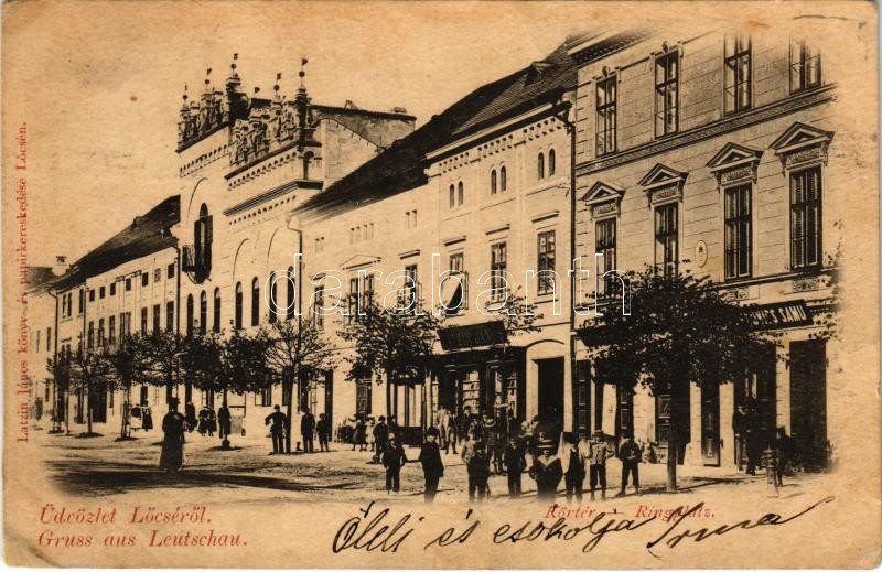 Leírás: 1899 (Vorläufer) Lőcse, Levoca; Körtér, Latzin János üzlete és saját kiadása / Ringplatz, shops (EK)