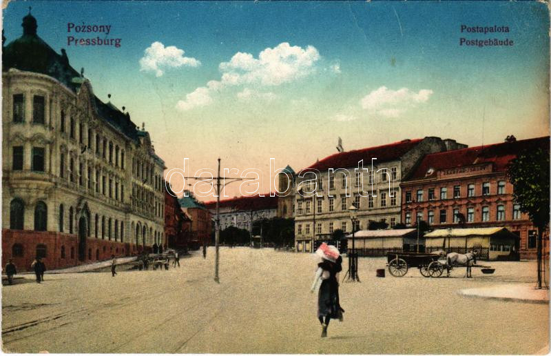 1913 Pozsony, Pressburg, Bratislava; Postapalota, lovaskocsi, Szarvas ... https://www.darabanth.com/hu/429-Gyorsarveres/429.0/Kepeslapok/Felvidek~1500007/1913-Pozsony-Pressburg-Bratislava-Postapalota-lovaskocsi-Szarvas-szalloda-post-palace-horse~II2752987