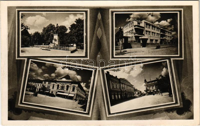 1944 Rimaszombat, Rimavská Sobota; Tompa Mihály szobor, kórház, Három Rózsa szálloda, étterem és kávéház, Melczer Pál üzlete / statue, hospital, hotel, restaurant and cafe, shops