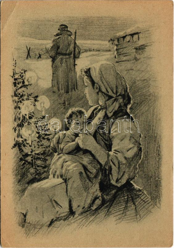 Karácsony. Tábori Postai Levelezőlap. Kiadja a M. kir. honvéd haditudósító osztály parancsnoksága / WWII Hungarian military field postcard, Christmas (EK)