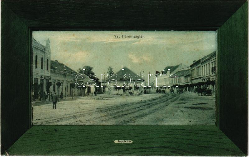 Leírás: 1909 Tapolca, Szentháromság tér, Balaton szálloda, üzletek. Löwy B. kiadása (EK)