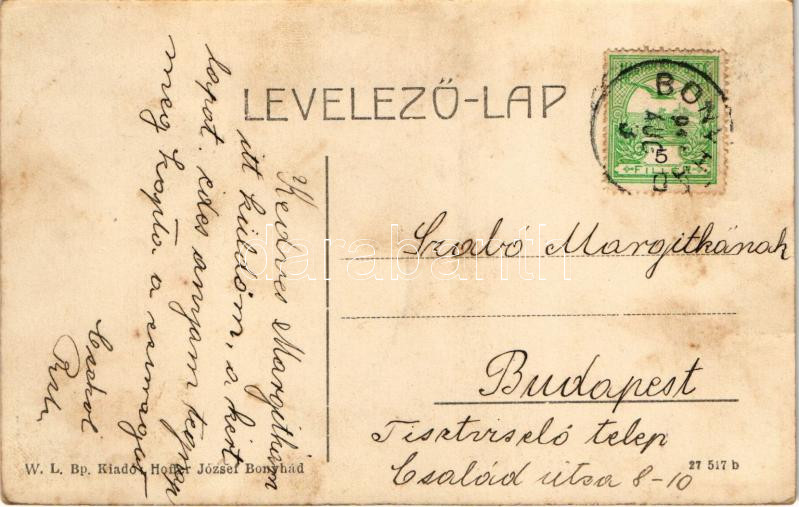 Leírás: 1911 Bonyhád, Evangélikus templom az iskolával. W.L. Bp. Hoffer József kiadása (fl)