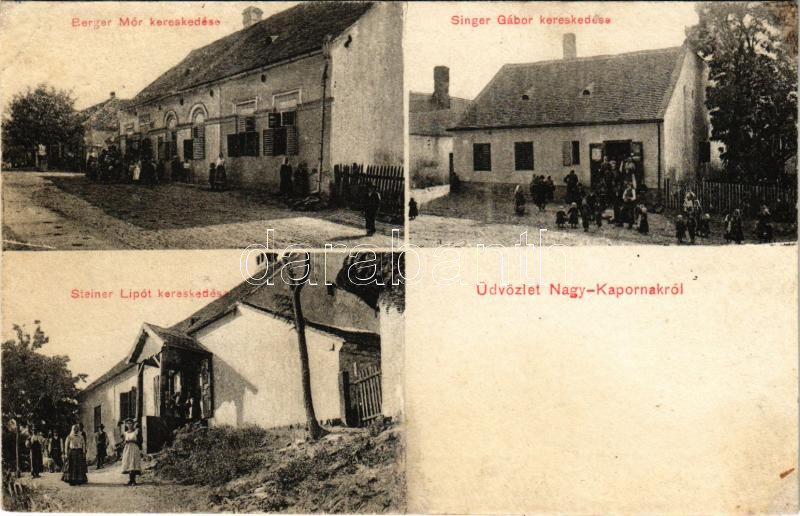 1913 Nagykapornak (Zala), Berger Mór, Singer Gábor és Steiner Lipót üz... https://www.darabanth.com/hu/429-Gyorsarveres/429.0/Kepeslapok/Magyarorszag~1500005/1913-Nagykapornak-Zala-Berger-Mor-Singer-Gabor-es-Steiner-Lipot-uzlete-r~II2752883