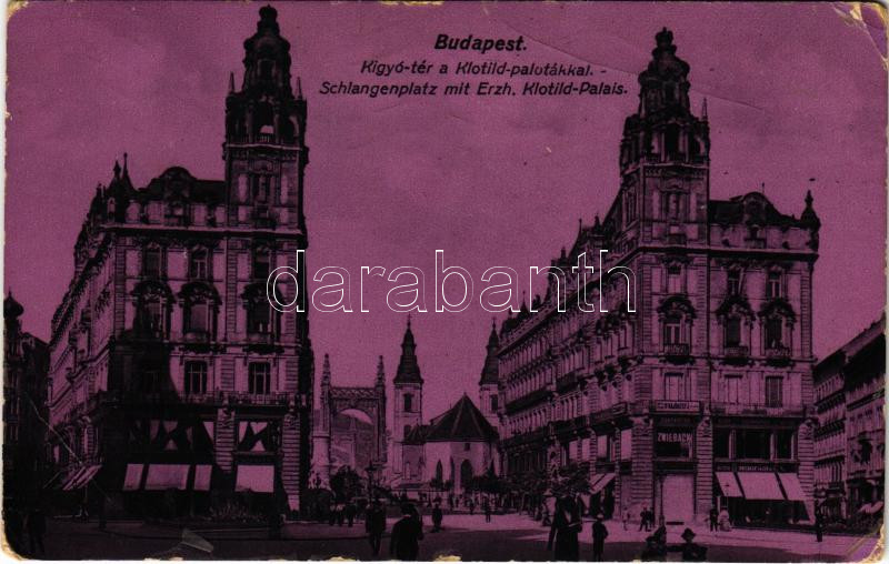 1914 Budapest V. Kígyó tér, Klotild paloták (EB) https://www.darabanth.com/hu/429-Gyorsarveres/429.0/Kepeslapok/Magyarorszag~1500005/1914-Budapest-V-Kigyo-ter-Klotild-palotak-EB~II2749178