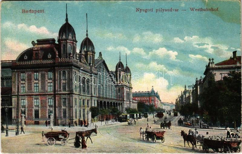 1914 Budapest VI. Nyugati pályaudvar, villamosok https://www.darabanth.com/hu/429-Gyorsarveres/429.0/Kepeslapok/Magyarorszag~1500005/1914-Budapest-VI-Nyugati-palyaudvar-villamosok~II2750778