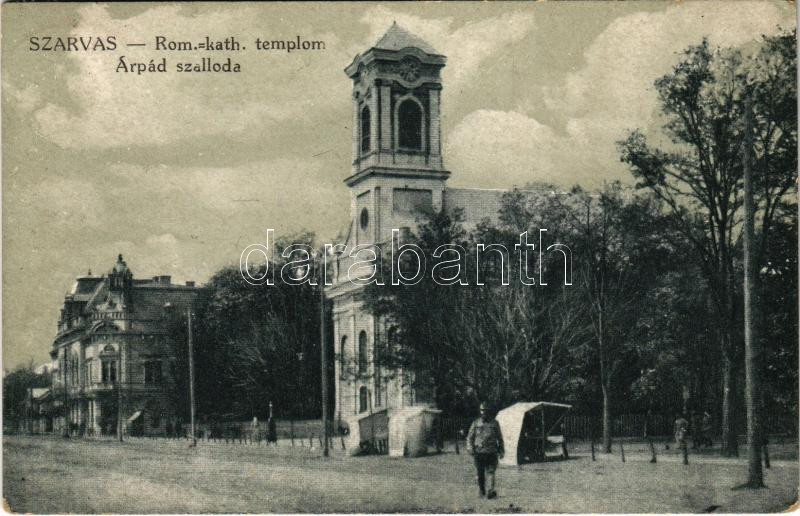 1922 Szarvas, Római katolikus templom, Árpád szálloda, üres piaci bódé... https://www.darabanth.com/hu/429-Gyorsarveres/429.0/Kepeslapok/Magyarorszag~1500005/1922-Szarvas-Romai-katolikus-templom-Arpad-szalloda-ures-piaci-bodek-katona-Tulok-Jeno-~II2755141