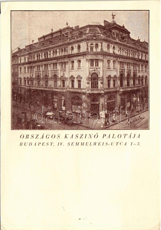 1939 Budapest V. Országos Kaszinó Palotája. Semmelweis utca 1-3. (EK) https://www.darabanth.com/hu/429-Gyorsarveres/429.0/Kepeslapok/Magyarorszag~1500005/1939-Budapest-V-Orszagos-Kaszino-Palotaja-Semmelweis-utca-1-3-EK~II2752827