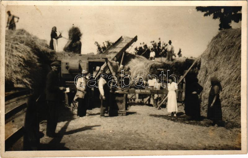 Aldebrő (?), Poór Mátyás cséplőgépe, cséplés. photo (fl) https://www.darabanth.com/hu/429-Gyorsarveres/429.0/Kepeslapok/Magyarorszag~1500005/Aldebro-Poor-Matyas-cseplogepe-cseples-photo-fl~II2750727