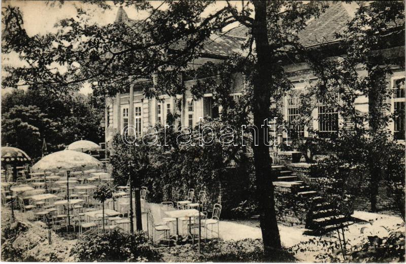 Leírás: Budapest II. Hűvösvölgyi Park Szanatórium Klimatikus Physikális és Diétás Gyógyintézet kertje. Hidegkúti út 78. reklám a hátoldalon