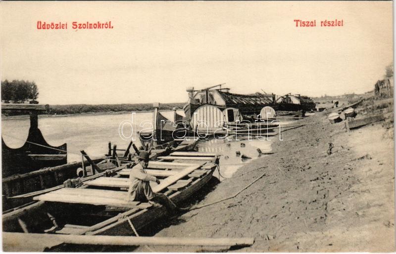 Leírás: Szolnok, Tiszai részlet halászhajókkal. Állomás tőzsde kiadása