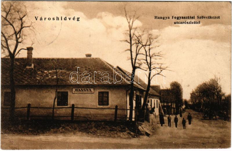 Leírás: Városhídvég (Szabadhídvég), Hangya fogyasztási szövetkezet és utca (EK)