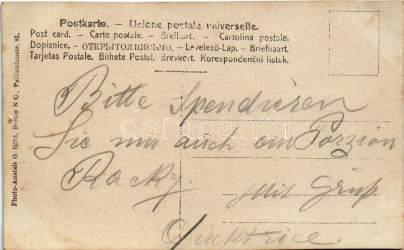 Leírás: Dobó Testvérek, Magyar művészi tánc duett / Gesch. Dobó ungarische Kunst Tänzer, Gesangs- & Tanz-Duett. Photo-Anstalt G. Böhl (Berlin) (lyuk / pinhole)