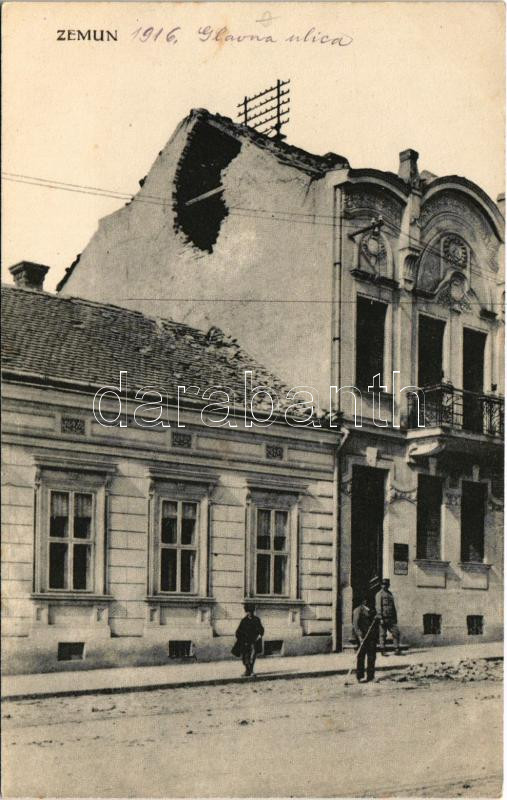 Zimony, Semlin, Zemun; Glavna ulica / Első világháborúban szétlőtt épü... https://www.darabanth.com/hu/429-Gyorsarveres/429.0/Kepeslapok/Vajdasag~1500010/Zimony-Semlin-Zemun-Glavna-ulica-Elso-vilaghaboruban-szetlott-epulet-a-fo-utcaban-W~II2754999