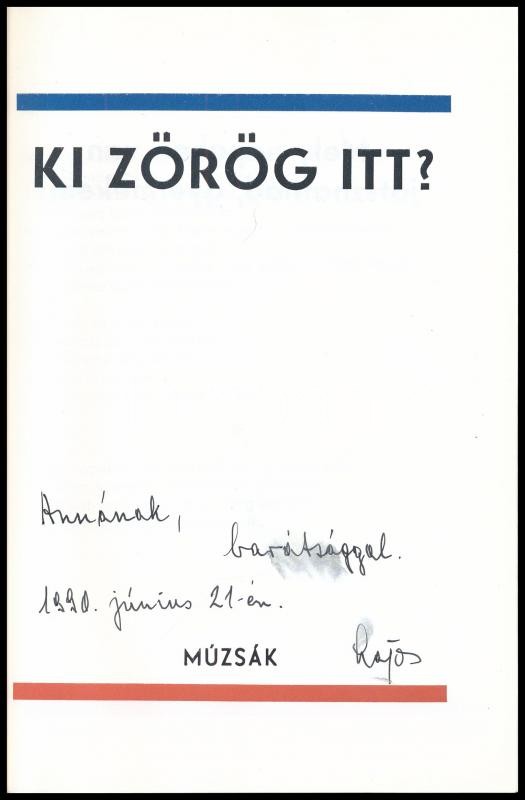 Ki zörög itt? Angol népi gyermekversek. Ford.: Mann Lajos. Keresztes Dóra illusztrációival. A fordító által Major Anna (1932-2021) dramaturg,a Szabó - család dramaturgja részére DEDIKÁLT példány. Bp., 1989., Múzsák. Kiadói papírkötés.