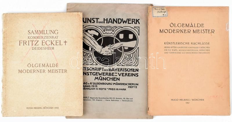 1916 Ölgemälde Moderner Meister. Sammlung Kommerzienrat Fritz Eckel In Deidesheim. Auktion in München in der Galerie Helbing. Papírkötés, kopott borítóval, a borítón áthúzással.;