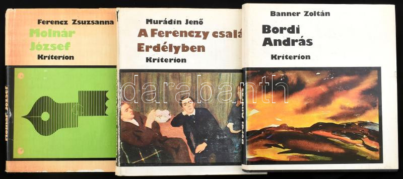 3 db művészeti könyv: Banner Zoltán: Bordi András; Murádin JenÅ‘: A Ferenczy művészcsalád Erdélyben; Ferencz Zsuzsanna: Molnár József. Bukarest, 1978-1982, Kriterion. Fekete-fehér és szÃnes képekkel illusztrálva. Kiadói egészvászon-kötés, kiadói papÃr védÅ‘borÃtóban, vegyes állapotban.