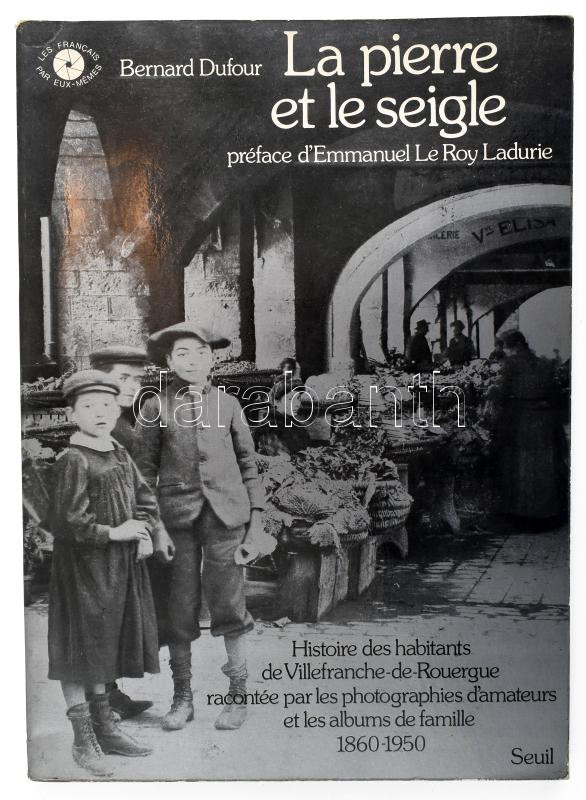 Bernard Dufour: La pierre et le seigle. Préface d'Emmanuel La Roy Ladurie. Histoire des Habitants de Villefranche-de-Rouergue racontée par les photographies d'aamateurs et les albums de famille 1860-1950. hn., 1977, Seuil. Fekete-fehér fotókkal. Francia nyelven. Kiadói papírkötés.