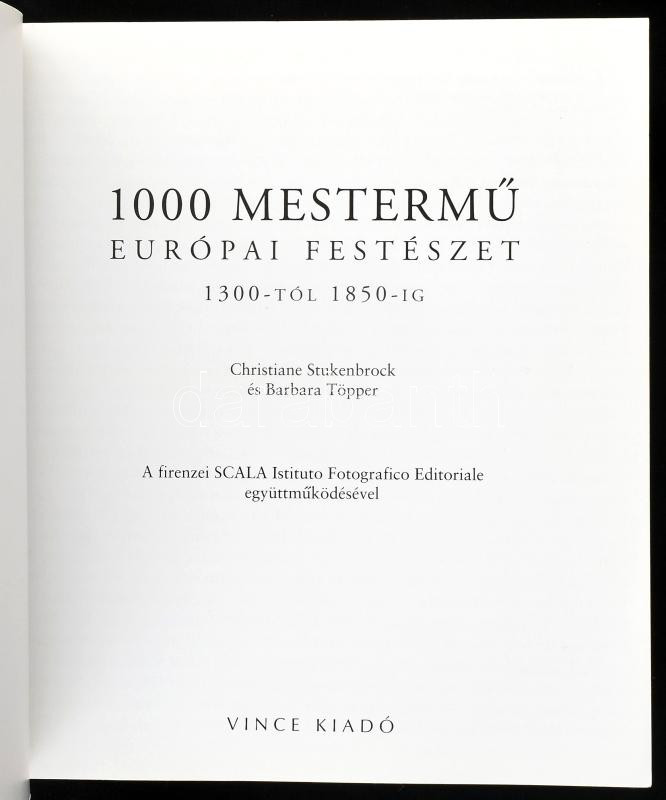 Leírás: Christiane Stukenbrock - Barbara Töpper: 1000 mestermű - Európai festészet 1300-tól 1850-ig. Ford.: Béresi Csilla. Bp., 2006, Vince. Gazdag képanyaggal illusztrálva. Kiadói papírkötés.