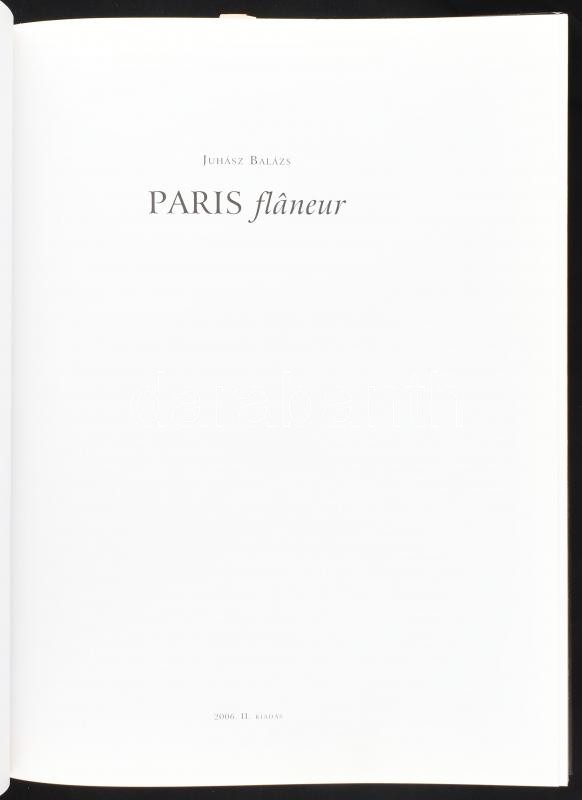 Leírás: Juhász Balázs: Paris flaneur. hn., 2006., Szerzői. II. kiadás. Gazdag képanyaggal illusztrált. Kiadói kartonált papírkötés, kiadói papír védőborítóban. Juhász Balázs fotográfus munkáit tartalmazó, szerzői kiadású könyv.