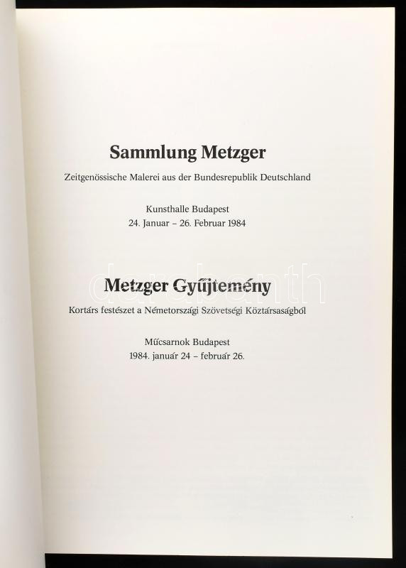 Metzger Gyűjtemény. Sammlung Metzger. Kortárs festészet a Németországi Szövetségi Köztársaságból. Szerk.: Felix Zdenek. Bp., 1984., Műcsarnok. Gazdag képanyaggal illusztrált. Kiadói papírkötésben