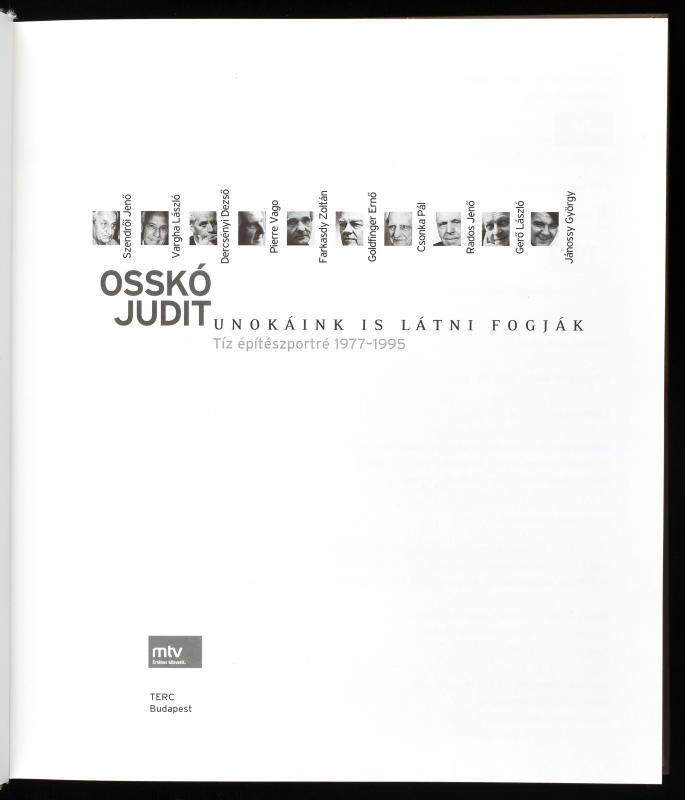 Osskó Judit: Unokáink is látni fogják. Tíz építészportré 1977-1995. Szendrői Jenő, Vargha László, Dercsényi Dezső, Pierre Vágó, Farkasdy Zoltán, Goldfinger Ernő, Csonka Pál, Rados Jenő, Gerő László, Jánossy György. Bp., 2007., TERC. DVD-melléklet nélkül. Kiadói kartonált papírkötés.
