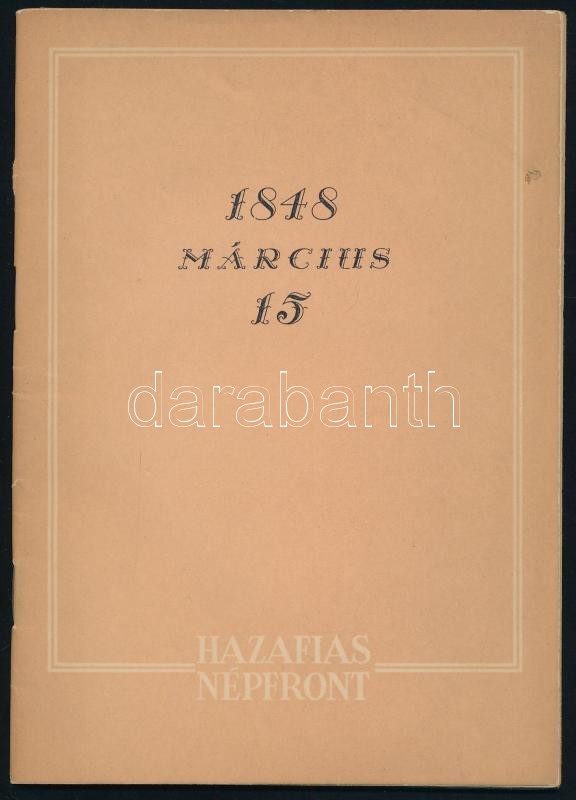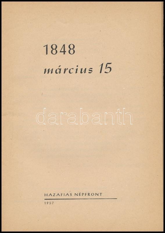 1848 március 15. Bp., 1957., Hazafias Népfront, 62+2 p. https://www.darabanth.com/hu/429-Gyorsarveres/429.0/Konyvek/Konyvek-Tortenelem~1000008/1848-marcius-15-Bp-1957-Hazafias-Nepfront-62plus2-p~II2733686