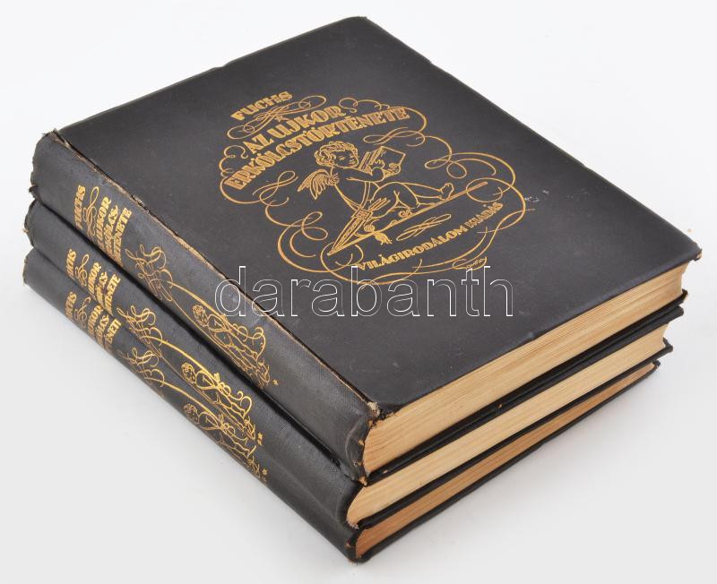 Eduard Fuchs: Az erkölcsök története az újkorban I-III. köt. I. köt.: A renaissance. II. köt.: A gáláns kor. III. köt.: A nagy forradalomig. Bp., én., Világirodalom. Második kiadás. Kiadói aranyozott egészvászon-kötés, a borítókon kis kopásnyomokkal, az I. kötet gerincén sérülésnyomokkal. Számozott, 717. számú példány.
