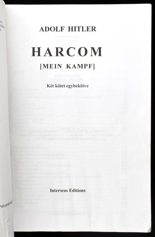 Hitler, Adolf: Harcom (Mein Kampf). Isle of Man, 1996, Interseas Editi... https://www.darabanth.com/hu/429-Gyorsarveres/429.0/Konyvek/Konyvek-Tortenelem~1000008/Hitler-Adolf-Harcom-Mein-Kampf-Isle-of-Man-1996-Interseas-Editions-367-p-Kiadoi-papirkot~II2750536