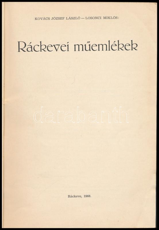 Kovács-Losonci: Ráckevei műemlékek. Ráckeve, 1968. 80p. Kiadói papírbo... https://www.darabanth.com/hu/429-Gyorsarveres/429.0/Konyvek/Konyvek-Utazas-helytortenet~1000012/Kovacs-Losonci-Rackevei-muemlekek-Rackeve-1968-80p-Kiadoi-papirboritoval~II2705278