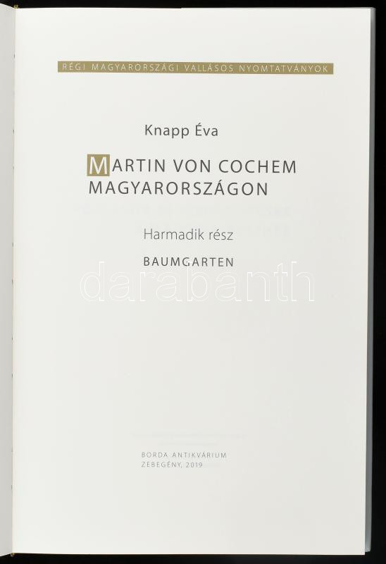 Régi magyarországi vallásos nyomtatványok 4.: Knapp Éva: Martin von Cochem Magyarországon. III. rész: Baumgarten. Zebegény, 2019., Borda. Kiadói egészvászon-kötés, kiadói papír védőborítóban.