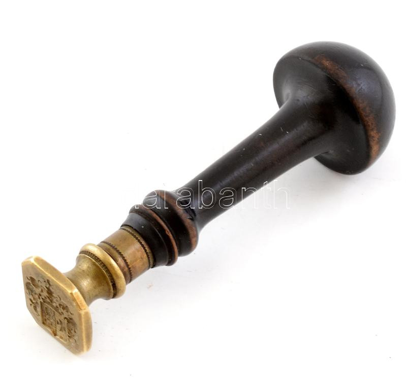 Leírás: Antik családi címeres pecsétnyomó. Az eredetileg ír származású és Csehországban élő Watlet család címere. Kopásokkal, m: 8 cm