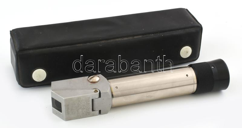 OG-101/C tÃpusú kézi refraktométer. Dobozában, szép állapotban, leÃrással. Felhasználható: Élelmiszeriparban, mezÅ‘gazdaságban a paradicsom, szÅ‘lÅ‘, cukorrépa érettségi fokának megállapÃtására, cukorgyártás során folyamatos minÅ‘ség ellenÅ‘rzésre, a méz minÅ‘ségének vizsgálatára. Vendéglátóiparban, a szeszes italok, üdÃtÅ‘k, koktélok és fekete kávé ellenÅ‘rzésére. Vegyiparban gyors szárazanyag meghatározása vegyszerek és keményÃtÅ‘k sűrűségének mérésére. Gépjárműszervizekben, benzinkutaknál, fagyálló és ablakmosó folyadék, valamint akkumulátorsav mérésére.