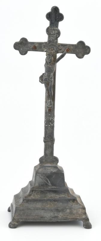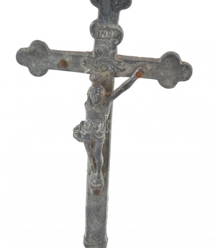 Leírás: Ón feszület XIX. sz. Krisztus egyik keze hiányzik. 27 cm