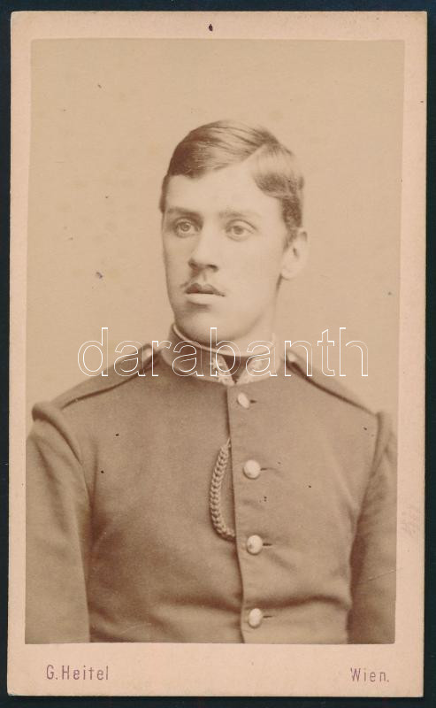 1882 Katonaportré (Corporal Paulick), keményhátú fotó G. Heitel bécsi műterméből, vizitkártya, hátoldalán feliratozott, szép állapotban, 11x6,5 cm / K.u.K. soldier (Corporal Paulick) CDV photo, G. Heitel Wien
