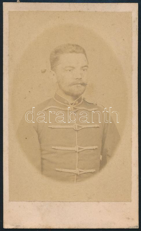Leírás: cca 1870 Katonaportré, keményhátú fotó Ramis Antal jászberényi műterméből, 10,5×6,5 cm