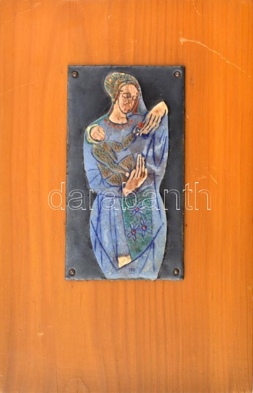 Leírás: Olvashatatlan jelzéssel: Madonna gyermekével. Tűzzománc, fára applikálva. Tűzzománc mérete: 16,5x9,3 cm