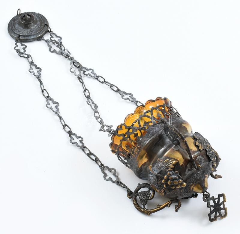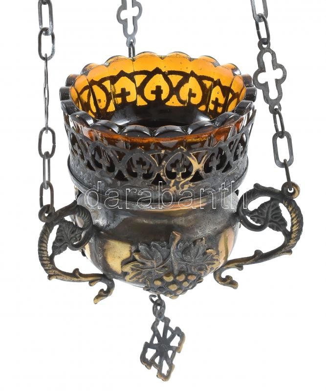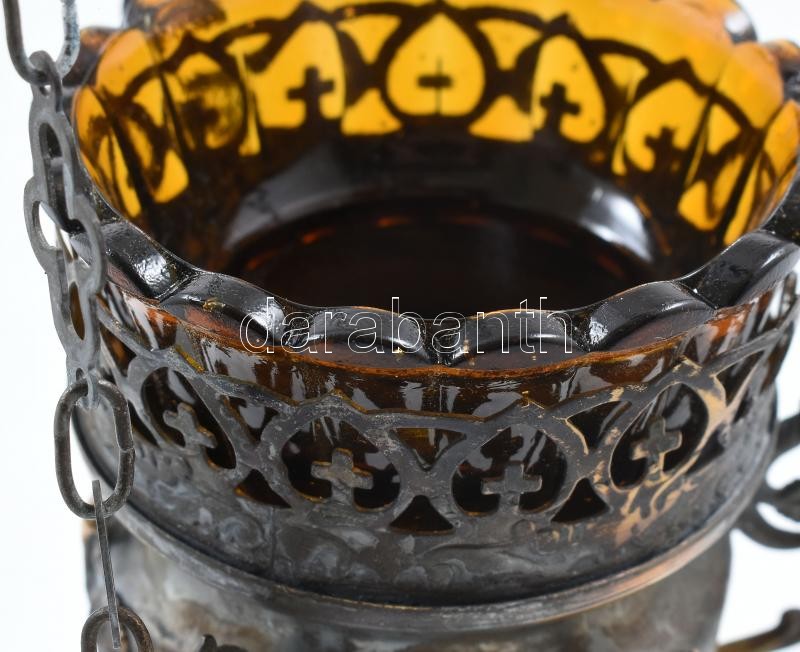 Leírás: Örökmécs, fém, üveg betéttel, kopott, m: 35 cm