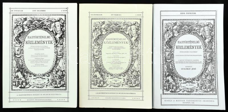 1926-1997 Hadtörténelmi Közlemények 3 db száma: 1926. (XXVII.) évf. IV. füzet, szerk.: Gyalókay Jenő. Bp., MTA (Kir. M. Egyetemi Ny.) + 108. évf. 4. sz. és 110. évf. 1. sz., 1995. dec. - 1997. márc.