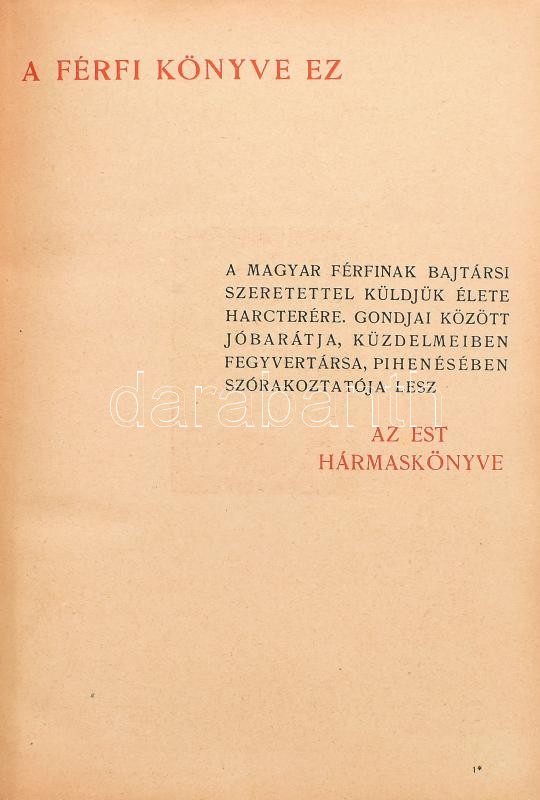 Leírás: 1930 Az Est hámaskönyve I. a férfi könyve. Korabeli félbőr kötésben.