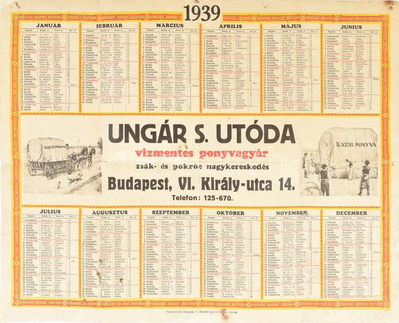 1939 Ungár S. Utóda Vízmentes Ponyvagyár Budapest falinaptár, foltos, ... https://www.darabanth.com/hu/429-Gyorsarveres/429.0/Mutargy-papirregiseg-egyeb/Nyomtatvanyok~1000002/1939-Ungar-S-Utoda-Vizmentes-Ponyvagyar-Budapest-falinaptar-foltos-szakadasokkal~II2754812