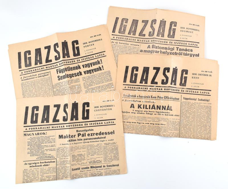 1956 Az Igazság című forradalmi újság október 30., november 1-2-3-i sz... https://www.darabanth.com/hu/429-Gyorsarveres/429.0/Mutargy-papirregiseg-egyeb/Nyomtatvanyok~1000002/1956-Az-Igazsag-cimu-forradalmi-ujsag-oktober-30-november-1-2-3-i-szama~II2750859
