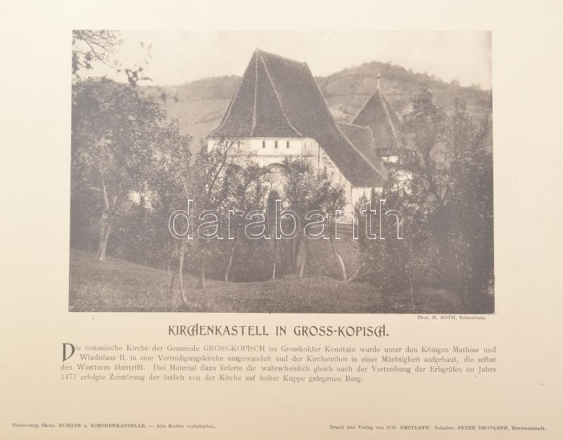 Leírás: cca 1910 Sigerius, Emil: Siebenbürgisch-sächsische Burgen und Kirchenkastelle, 52 tábla szász-erdélyi várakakl sés templomokkal, feliratozva 33x25 cm / 52 pages of Sayon Transylvanian castles and churches