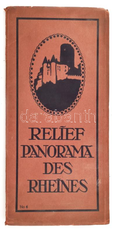 cca 1920-1940 Relief-Panorama des Rheines, dekoratív, színes, kihajtható grafikus panorámakép a Rajna Köln-Mainz szakaszáról, kisebb szakadással, 174x25 cm